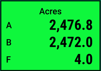 The Acres widget tells you how much land you have covered, using three counters: A and B are manually resettable, a bit like car odometers, while F gives your coverage so far in the currently active field.