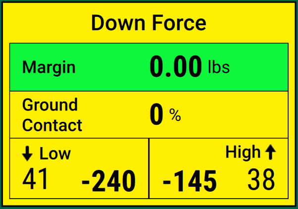 The Down Force highlights the key metrics of how your Down Force system is performing: