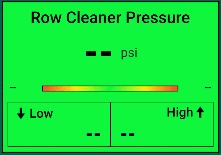 The Row Cleaner Pressure widget shows you the current pressure applied by your Row Cleaner modules. If the value is negative, that means the pressure is lifting upwards. If the value is negative, the pressure is pushing downwards.
