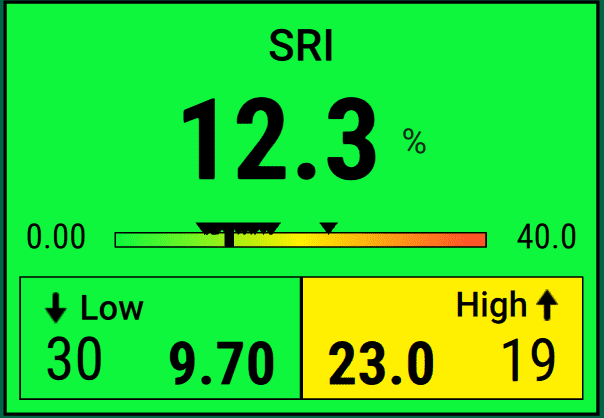 By default, this widget will turn yellow when the SRI gets above 20%, which is where SRI starts to have negative agronomic implications. But you can adjust that threshold, as with all metrics alerts, in the Crops setup menu.