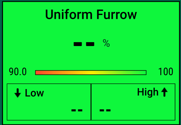 The Uniform Furrow widget tells you what percentage of your furrow is “uniform” — i.e., consistent in terms of light, cloddiness, moisture changes, etc. — according to SmartFirmer data.